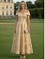 A-linja Kokopitkä Iltapuku Muodollinen mekko Tyylikäs Päivittäin Puolimuodolliset mekot 3/4 hiha poolokaulus Puutarhajuhlat Häät Organza Jakardi kanssa Kukkapainatus