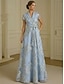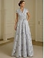 A-linja Kokopitkä Häävieraspuku Muodollinen mekko Leveähelmainen mekko Morsiammen äidin asu Puolihiha V kaula-aukko Venekaula-aukko Tyylikäs Yksinkertainen Muodollinen Organza Jakardi kanssa