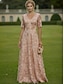 Trumpetti merenneito Polven yli Helmillä koristeltu Muodollinen mekko Morsiamen äidin mekko Cocktailmekot Juhlamekot Tyylikäs Lyhythihainen V kaula-aukko Puutarhajuhlat Häät Pitsi Organza kanssa