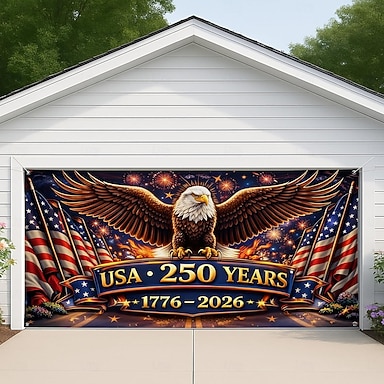Yhdysvaltain 250-vuotisjuhlan kunniaksi autotallin oven suojus, isänmaallinen kotka ja lippu, suuret autotallin oven koristeet, itsenäisyyspäivän ulko- ja sisäjuhlakoristeet