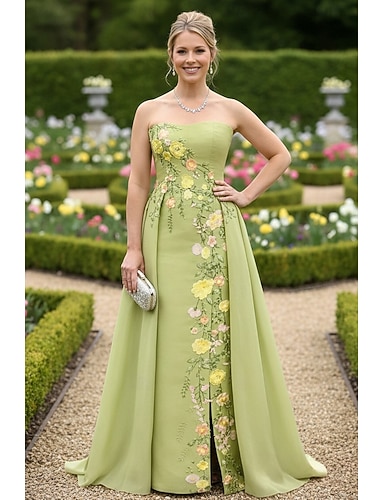 A-linja Hipaisulaahus Kokopitkä Muodollinen mekko Iltapuku Overhameen mekko Iltapuku Tyylikäs Korkea jaettu Hihaton Olkaimeton Häät Muodollinen Satiini kanssa Kirjonta Applikaatiot
