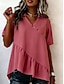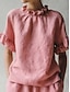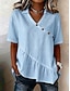 Naisten T-paita Röyhelö Napit Tavallinen Muoti Tyylikäs Klassinen Lyhythihainen V kaula-aukko Tavalliset topit Päivittäin Bile Viikonloppu Sininen Musta Valkoinen Punastuvan vaaleanpunainen Khaki