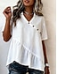 Naisten Paita Pusero Röyhelöpaita Röyhelö Rusetti Yhtenäinen väri Tyylikäs Perus Klassinen Lyhythihainen Paitapuserokaula-aukko Tavalliset topit Päivittäin Pyhäpäivä Bile Musta Valkoinen Keltainen