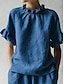 Naisten Puuvillaset liinavaatteet Shortsit setit Keinopuuvillainen pellava Lyhythihainen Tiukka pyöreä kaula-aukko Yhtenäinen väri Röyhelö Tyylikäs Muoti Katutyyli Kausaliteetti Päivittäin ulko-