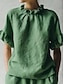 Naisten Pusero Puuvillainen paita Röyhelö Napit Yhtenäinen väri Päivittäin Tyylikäs Perus 3/4 hiha V kaula-aukko Tavalliset topit Päivittäin Sininen Musta Valkoinen Keltainen Punastuvan