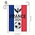 Ranskan jalkapallopuutarhalippu vuodelle 2026, jossa on kolmivärinen kuvio kukon tunnuksella ja jalkapallolla, täydellinen ulkokoristeena ranskalaisille jalkapallofaneille