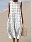 Naisten Midi Mekko Pellavanomainen Kesämekko Siirrosmekko A-linja Mekko Loma Rentoutuminen Boho Ranta Ulkona Irtonainen Fit Graafinen Geometrinen Hihaton Pyöreä Kaula Sininen Valkoinen Keltainen