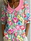 Naisten Boho T-paita Kukka Graafinen Kasvit Vintage Tyylikäs Rentoa Pitkähiha V-kaula-aukko Normaalivuori Tavanomaiset Päivät Viikonloppu Ranta Vaate Printti Ash Musta Beige Kesä Kevät