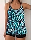 Naisten tankini 2-osainen uimapuku palmut lyhyet housut vatsan hallinta korkea vyötärö hoikka selkä avoin loma rantaasu kukkakuviot värilohko U-kaulaaukko hihaton