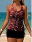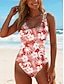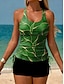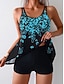 Naisten tankini 2-osainen uimapuku kerrostettu alushousut vatsan hallinta korkea vyötärö hoikka selkä avoin loma rantaasu kukkakuviot U-kaulaaukko hihaton