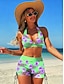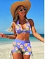 Naisten bikinit 2 osainen uimapuku korkea vyötärö avonainen loma rantaasu kukkagraafinen V-kaula-aukkoinen ilman hihoja uimapuku