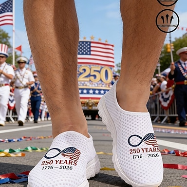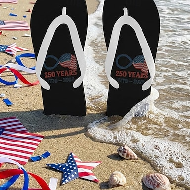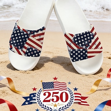 Miesten siniset isänmaalliset varvassandaalit – kevyet rantatossut, joissa on kotkan ja Amerikan lipun kuvio sekä "250"-design loma-, uima-allas-, lomakeskus- ja kesäkäyttöön.
