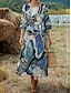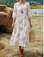 Naisten Maxi Mekko Pellavamaista Hengittävää Kevyt Aurinkomekko A-linjainen Mekko Loma Rennoissa Boho Ranta Löysä Istuvuus Kukallinen Graafinen Lintu 3/4 Pitkähihasta V-kaula Sininen Vaaleanpunainen