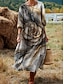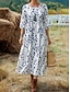Naisten Maxi Mekko Pellavamaista Hengittävää Kevyt Muuttuva Mekko Kesätyyli Loma Rennoissa Boho Ranta Loma Treffit Geometrinen 3/4 Pitkähihasta Pyöreä Kaula Sininen Valkoinen Vaaleanpunainen Ruskea