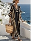 Naisten Maxi Mekko Pellavamaista Hengittävää Kevyt Aurinkomekko A-linjainen Mekko Loma Rennoissa Boho Ranta Ulkona Löysä Istuvuus Graafinen Geometrinen Pitkähihaista V-kaula Sininen Musta Valkoinen
