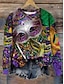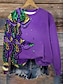 Karnevaali Naisten Pusero Collegepaita Grafiikka Rennot Pitkähihaiset Pyöreä Kaula-aukko Normaali Paidat Rennot Katu Päivittäinen Printti Keltainen Purppura Vihreä Kevät Syksy Talvi