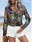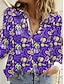 Karnevaali Naisten Paita Pusero Grafiikka Geometrinen Vintage Rennot Pitkähihaiset V-kaula-aukko Paita Kaulus Normaali Paidat Päivittäinen Puhdistus Napit Printti Musta Purppura Kesä Kevät Syksy Talvi