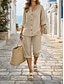 Naisten Vastaavat setit Puuvillaiset pellavapaidat Paidasetti Shortsit Rantahousut Rennot shortsit Pusero Sekoita ja sovita Asu 2kpl Urheilu Katutyyli Tavallinen Päivittäin Pitkähihainen Kesä Kevät