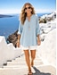 Naisten topit raidalliset tyylikkäät rennot lyhyt hihainen V-pääntie säännölliset päivittäinen printti sininen kesä