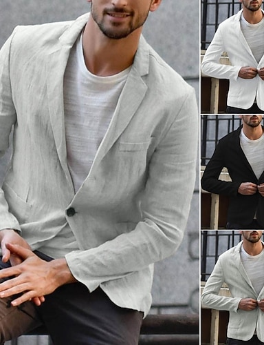 Miesten Blazer-takki Pellava bleiseri Lovikaulus Muoti Kevyt Retro / vintage Yhtenäinen Pellava bleiseri Musta Valkoinen Harmaa Räätälöity istuvuus Yksirivinen yksi nappi