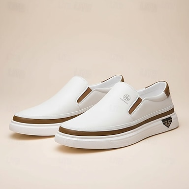 miesten valkoiset slip-on -loaferit – kevyet tekonahkaiset kengät pehmustetulla pohjalla arki- ja arkikäyttöön