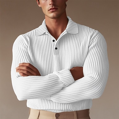 Miesten Joustinneuletoppi Textured Katu Kausaliteetti Kauluskäänne Pitkähihainen Perus Moderni Tavallinen Napit Kevät Syksy Syystalvi Tyköistuva Valkoinen Sininen Laivaston sininen Harmaa