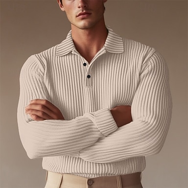Miesten Poolopaidat Joustinneuletoppi liiketoiminta Kausaliteetti Ribbineulospikeekaulus Pitkähihainen Muoti Perus Yhtenäinen väri Pintakäsitelty Neulominen Syksy Talvi Normaali Beesi Poolopaidat