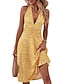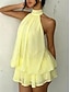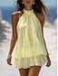 Naisten Mini mekko A linjainen mekko Ruffle mekko Riimu mekko Vapaa-aika ulko- Bile Tyköistuva Yhtenäinen väri Hihaton Riipuskaula Keltainen Kesä Kevät