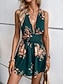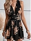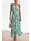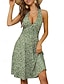 Naisten mini-mekko petite-mekko kesämekko halterneck-mekko aktiivinen muoti katumuoti ulkoilma loma päivittäinen normaali istuvuus kukkakuvio hihaton halterneck vaaleanvihreä kuninkaansininen