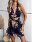 Naisten mini mekko pieni mekko sundress kesämekko halterneck mekko rento loma jokapäiväinen cocktailjuhlat normaali istuvuus printti hihaton halterneck olkaimeton sininen kesä kevät