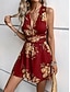 naisten kukka leikattu print riimu kaula minimekko päivittäin loma hihaton kesä kevät