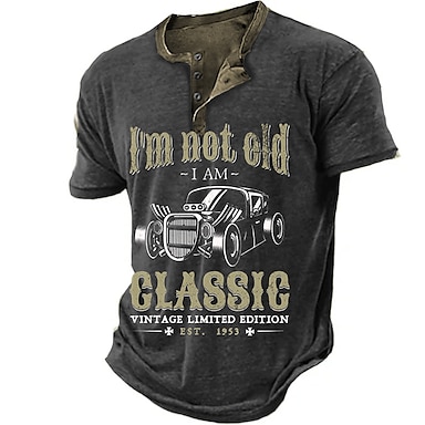 Miesten hauska graafinen T-paita 'En ole vanha olen klassikko' vintage hot rod lyhythihainen henley-paita perustettu 1953