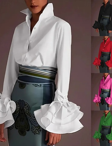 Naisten Paita Pusero Röyhelö Tavallinen Tyylikäs Moderni Pitkähihainen Paitapuserokaula-aukko Tavalliset topit Pyhäpäivä Bile Musta Valkoinen Rubiini Apila Ruusun vaaleanpunainen Syksy