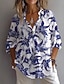 Naisten Paita Napita paita Rento paita Rantapaita Painettu Kuvitettu Tyylikäs Klassinen Vapaa-aika Pitkähihainen Paitapuserokaula-aukko Tavalliset topit Päivittäin Pyhäpäivä Bile Sininen Musta Ruusun