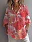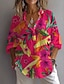 Naisten Paita Tyylikäs Satiinitoppi Pusero Napit Painettu Kukka Vintage Tyylikäs Pitkähihainen Paitapuserokaula-aukko Tavalliset topit Pyhäpäivä Bile Viini Purppura Apila Ruusun vaaleanpunainen Kevät