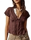 Naisten Pusero Napit Tavallinen Vintage Tyylikäs Lyhythihainen V kaula-aukko Tavalliset topit Päivittäin Pyhäpäivä Bile Musta Ruskea Ruusun vaaleanpunainen Kesä Kevät