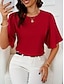 Naisten Paita Pusero Tavallinen Tyylikäs Klassinen Moderni Lyhythihainen Paitapuserokaula-aukko Tavalliset topit Päivittäin Pyhäpäivä Bile Musta Valkoinen Taivaan sininen Apila Ruusun vaaleanpunainen