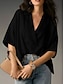 Naisten Paita Cotton Blend Pusero Napit Tavallinen Perus Moderni Vapaa-aika Puolihiha V kaula-aukko Tavalliset topit Päivittäin Pyhäpäivä Bile Musta Keltainen Ruusun vaaleanpunainen Harmaa Vaalean