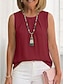 Naisten Pusero Sifonki Topit Rypytetty Tavallinen Moderni Vapaa-aika Hihaton Tiukka pyöreä kaula-aukko Tavalliset topit Päivittäin Pyhäpäivä Bile Valkoinen Vaalean vihreä Viini Ruusun vaaleanpunainen