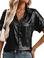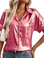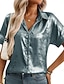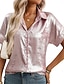 Naisten Paita Pukupaita Button Up paita Pusero Napit Yhtenäinen väri Tyylikäs Muoti Päivittäin Lyhythihainen Sänkyjen avaus Tavalliset topit ulko- Katuvaatteet Työ Ruusukulta salvain vihreä Musta