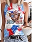itsenäisyyspäivä isänmaallinen naisten toppi graafinen lippu vintage tyylikkäät rento ilman hihoja pyöreä kaula-aukko säännölliset yläosat päivittäinen sininen punainen kesä kevät