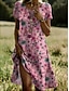 Naisten elegantti juhlavara-midi-mekko jossa pyöreä kaula-aukko lyhyet hihat kesämekko rento päivittäinen säännöllinen istuvuus kukkakuosi valkoinen vaaleanpunainen sininen vihreä kesä kevät syksy