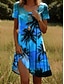 Naisten Mini mekko Kesämekko Rento mekko Tpaitamekko A linjainen mekko Tyylikäs Vapaa-aika Hiekkaranta Normaali Kukka Kuvitettu Lehti Lyhythihainen Tiukka pyöreä kaula-aukko Kauha Sininen