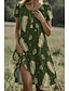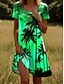 Naisten Mini mekko Kesämekko Tpaitamekko A linjainen mekko Loma Vapaa-aika ulko- Hiekkaranta Bile Normaali Kukka Kuvitettu Lehti Lyhythihainen Pyöreäkauluksinen Syvä vihreä Vaalean vihreä Vaalean