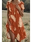 episodinen piirros naisten minimekko kesämekko t-paitamekko t-mekko loma rento bile normaali istuvuus kukkakuvio lyhythihainen v-aukkoinen oranssi ruskea vihreä kesä kevät syksy