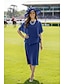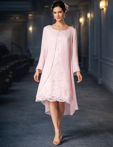 Kaksiosainen A-linja Polven yli Häävieraspuku Morsiammen äidin asu Lyhythihainen Pyöreä Tyylikäs Plus-koko Häävieras Hääjuhla Sifonki Pitsi Takki Mekot kanssa Solid Color