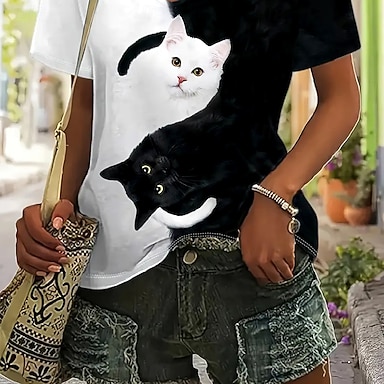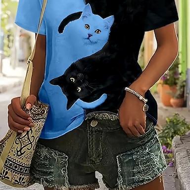 Naisten T-paita Painettu Kuvitettu Eläin Leopardi Vintage Tyylikäs Klassinen Lyhythihainen Tiukka pyöreä kaula-aukko Tavalliset topit Päivittäin Viikonloppu Sininen Musta Rubiini Purppura Fuksia Kes