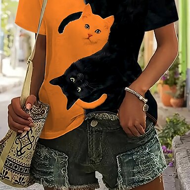 Naisten Puserot Painettu Kuvitettu Eläin Lämmin Klassinen Vapaa-aika Pitkähihainen Tiukka pyöreä kaula-aukko Tavalliset topit Kausaliteetti Katu Pyhäpäivä Keltainen Oranssi Khaki Syksy Talvi