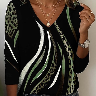 Naisten Tunika T-paita Painettu Kuvitettu Leopardi Väripalikka Vintage Tyylikäs Vapaa-aika Pitkähihainen V kaula-aukko Tavalliset topit Päivittäin Urheilu Viikonloppu Sininen Khaki Syksy