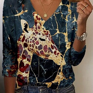 Naisten Tunika T-paita Painettu Leopardi Väripalikka Kirahvi Vintage Tyylikäs Vapaa-aika Pitkähihainen V kaula-aukko Tavalliset topit Päivittäin Urheilu Viikonloppu Sininen Keltainen Purppura Apila